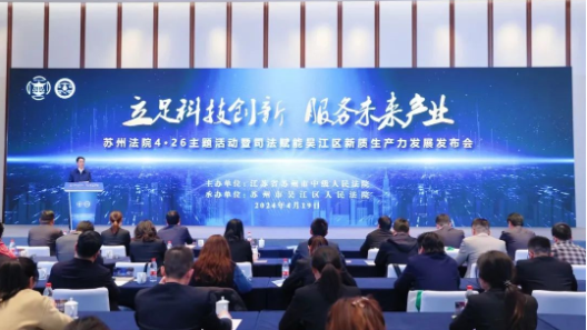 近日,由苏州市中级人民法院主办,苏州市吴江区人民法院承办的“立足科技创新 服务未来产业”苏州法院“4·26”主题活动暨“司法赋能吴江区新质生产力发展”发布会在吴江举行。苏州市中级人民法院党组书记、院长蔡绍刚出席活动并讲话,苏州市吴江区委副书记、区长王国荣出席活动。吴江区委副书记、政法委书记张炳高主持活动。