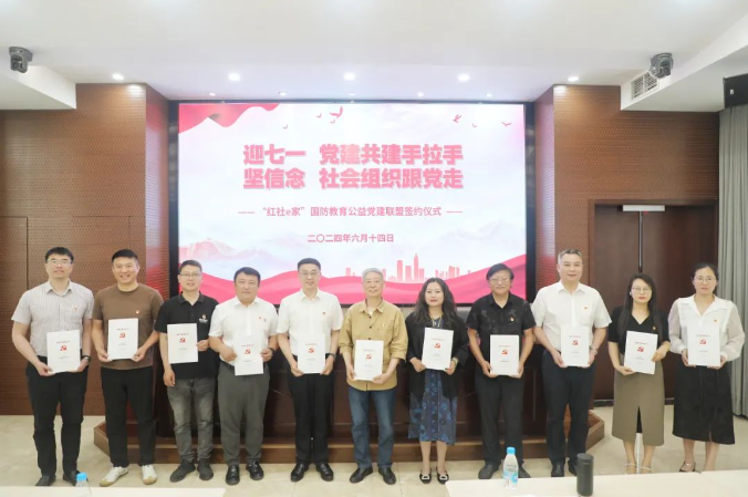 “国防教育责任重,社会组织显担当”。成立国防教育公益党建联盟,是由苏州市全民国防教育协会、江苏蓝之天律师事务所、苏州工业园区迎春花爱心联合会率先发起,苏州工业园区服务外包职业学院、苏州驴先生文明实践志愿服务总队、苏州金螳螂公益慈善基金会、苏州陈霞爱心慈善基金会、苏州市汀斯社工师事务所、苏州博慧教育发展基金会、苏州市姑苏区蝴蝶妈妈社工服务社、苏州市美容美发行业协会等积极参与,展现了11家社会组织党组织关心支持国防、传承红色基因的信心和决心。
